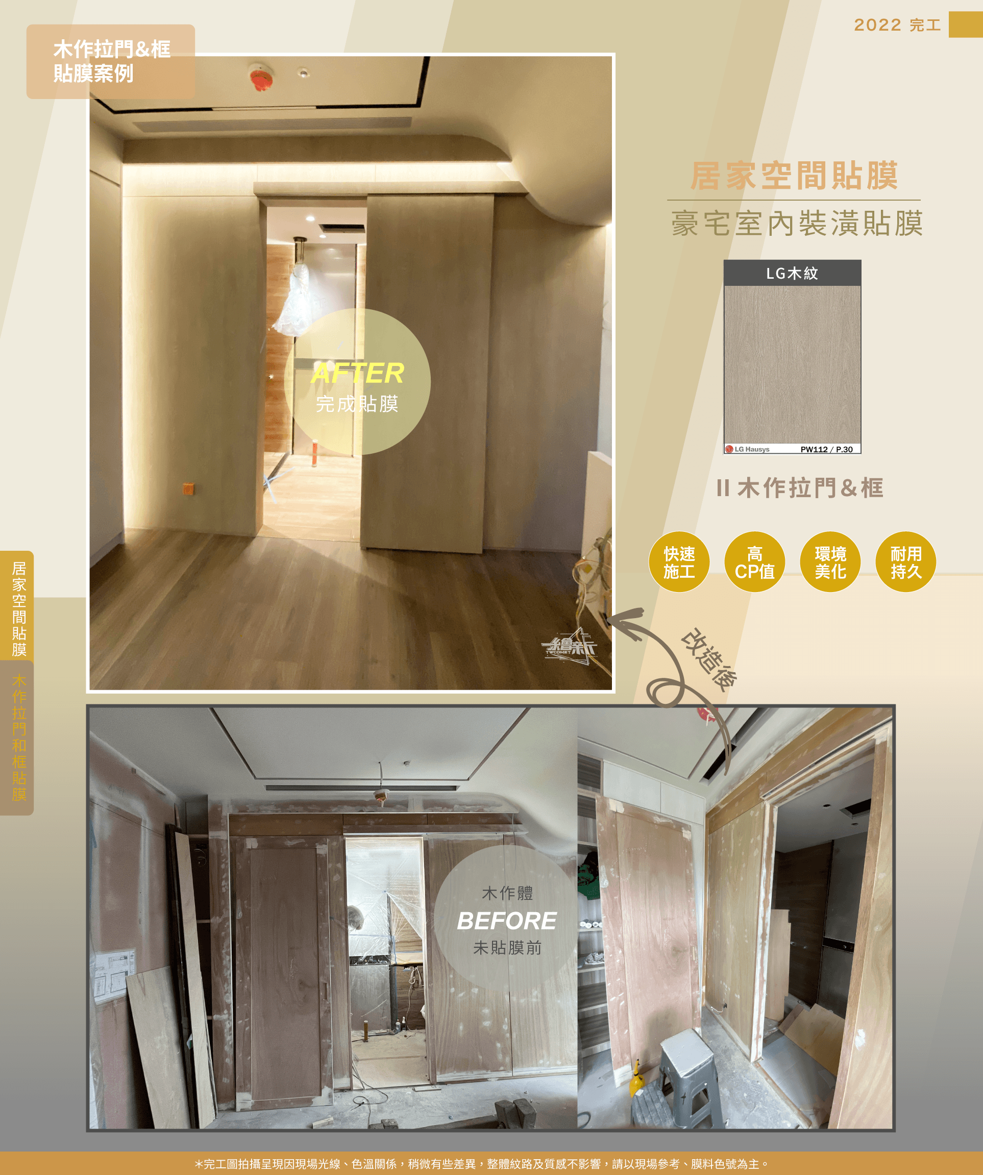繪新貼膜|居家空間|豪宅室內裝潢貼膜|特殊造型木作貼膜、拉門框貼膜、包櫃間貼膜|LG NW101.PW112.PW111