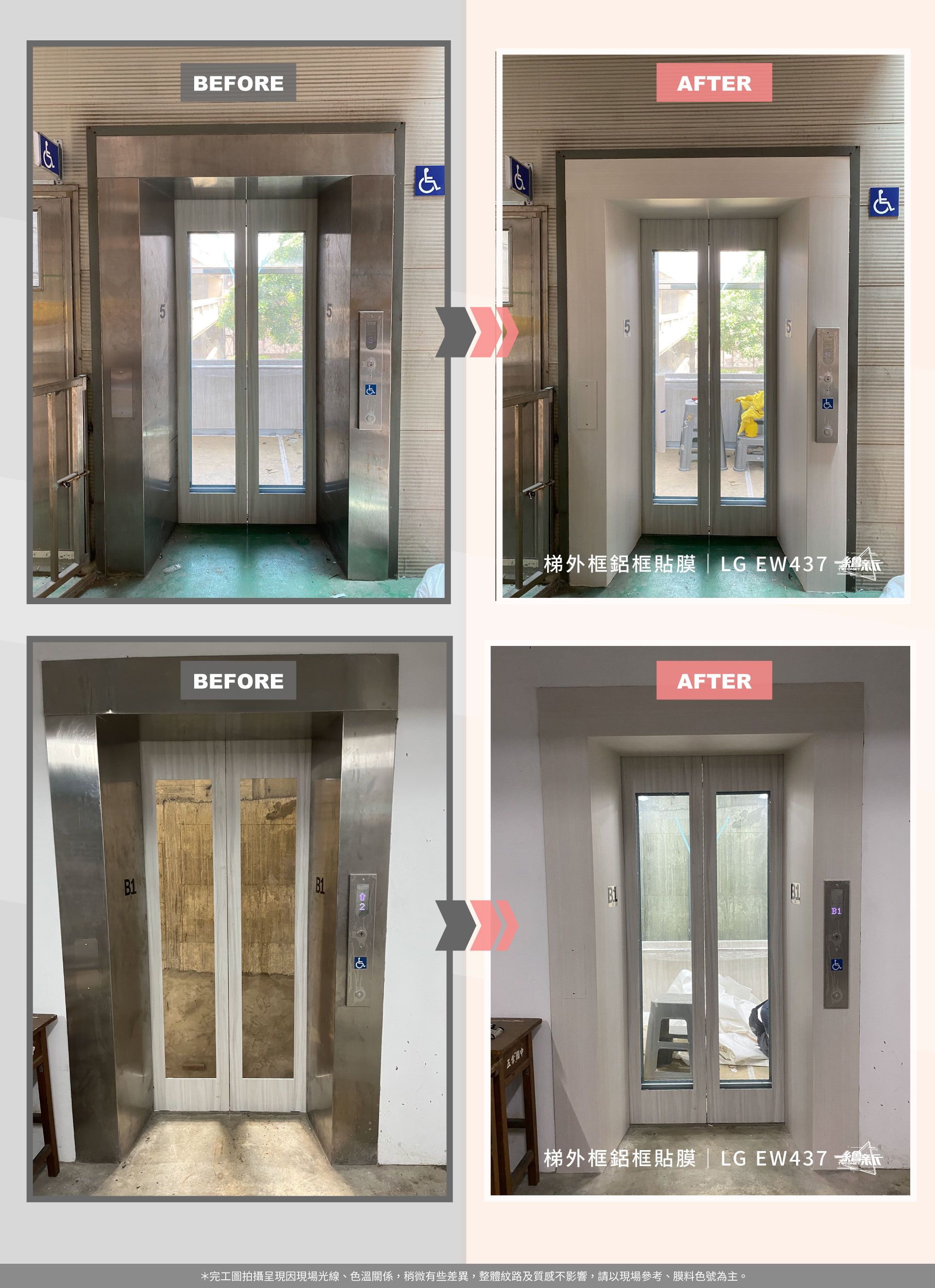 繪新貼膜|電梯貼膜|五常國中電梯外框鋁框貼膜|LG EW437