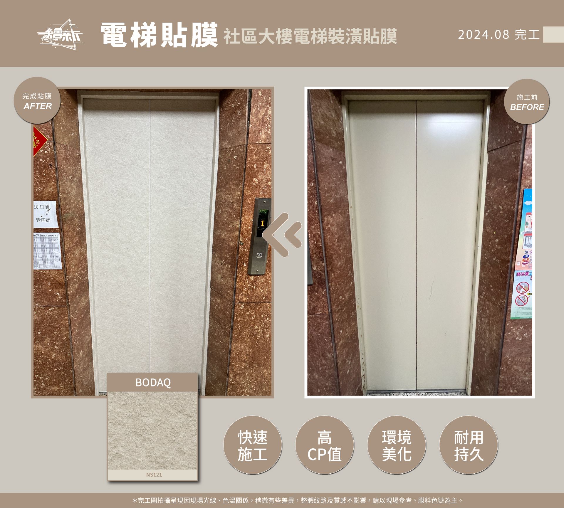 繪新貼膜|電梯貼膜|社區大樓電梯裝潢貼膜|BODAQ NS121 RM015